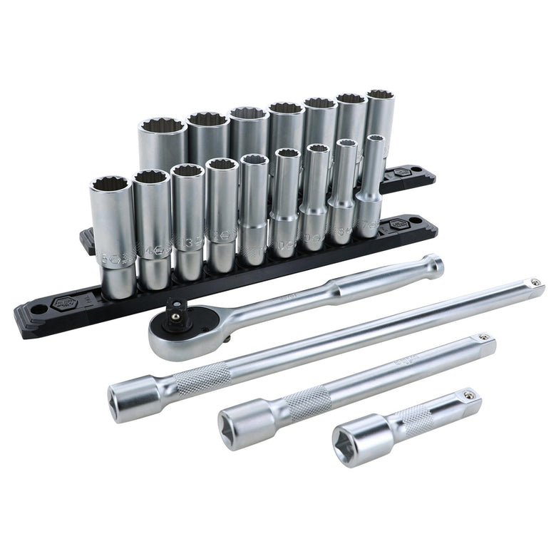 20 Piece Professional Series Deep Socket Set - 12 Point - 3/8" Drive - Metric