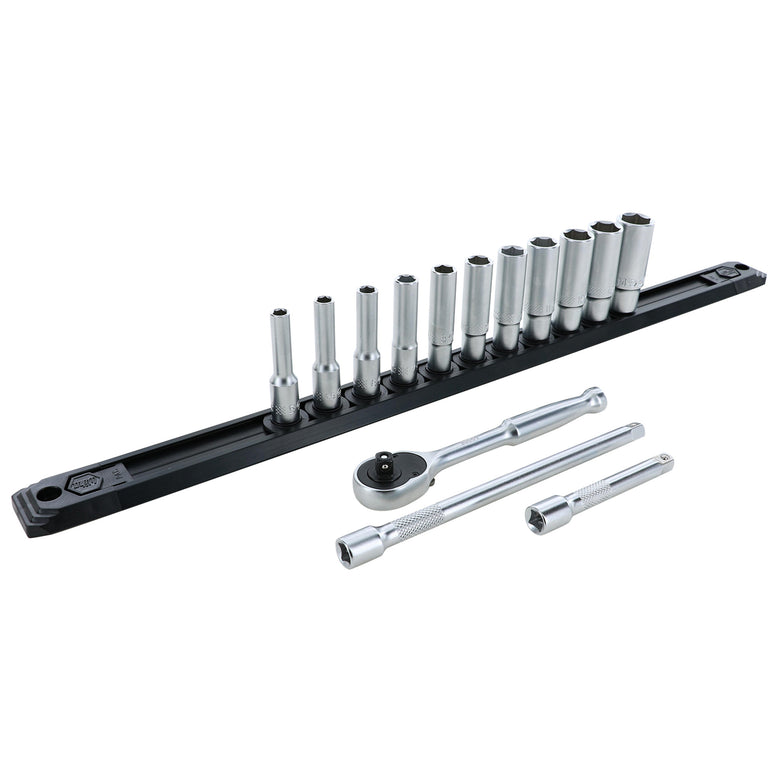 14 Piece Professional Series Socket and Ratchet Set with 3 and 6 Inch Extension Bars - Metric