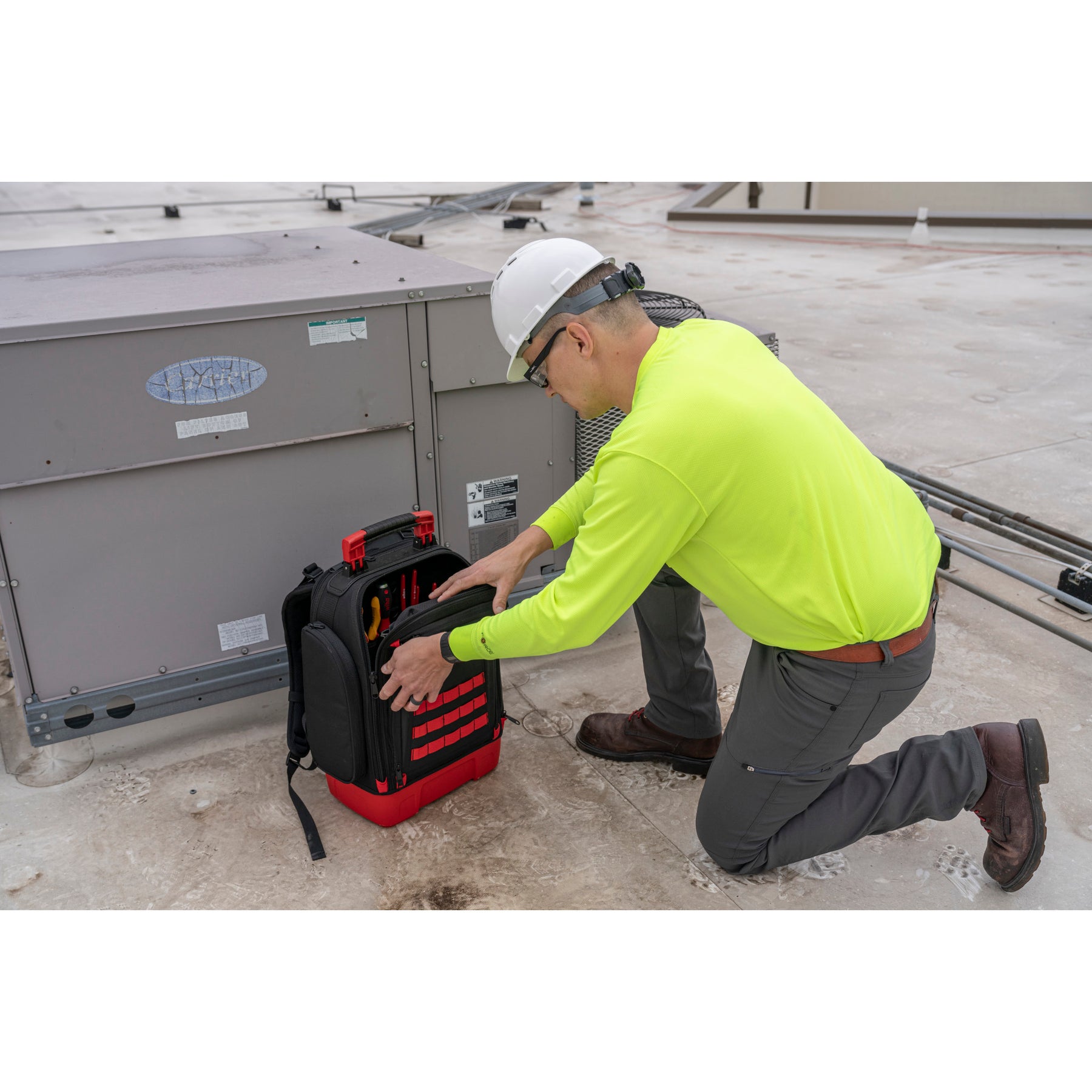 We took the popular Wiha Heavy Duty Tool Hauler Backpack and filled it with a new assortment of industrial-grade tools that work for you. Designed for safe and comfortable transport of Wiha Tools, the Heavy Duty Backpack is the perfect carry solution for accessing areas that require climbing extension or cage ladders, walking long distances to service equipment, or moving from site to site in a small payload vehicle. There’s a spot for everything with 77 storage and 30 flexible attachment options for tools and other essentials, while the bag's stable foothold ensures that the it stands firmly, even when opened. We've accompanied the backpack with a strong assortment of maintenance, repair, and operations (MRO) tools required to tackle the challenges presented in many facilities and industrial settings.