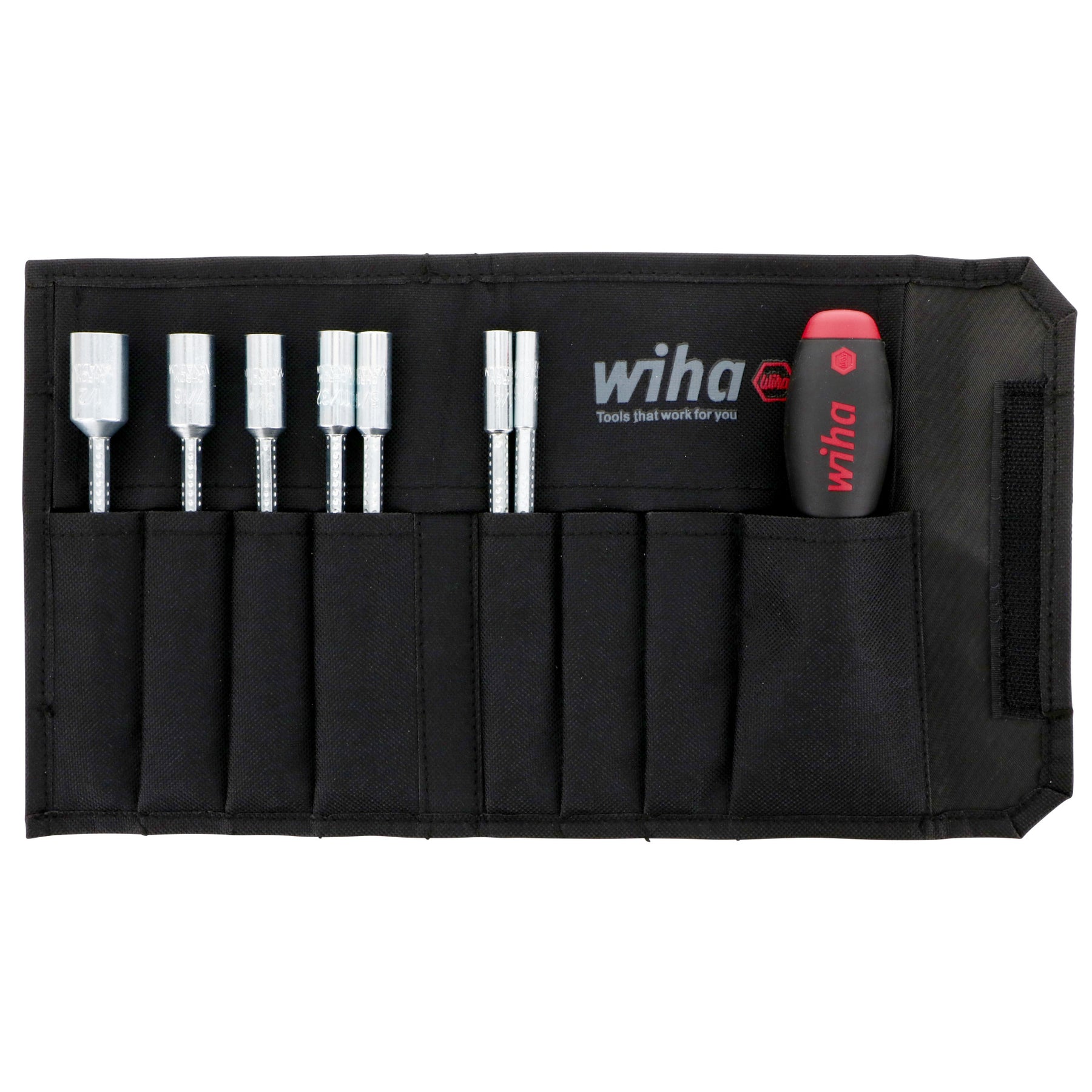 - Set Includes: Nut Drivers 3/16, 1/4, 5/16, 11/32, 3/8, 7/16, 1/2" | Cushion Grip Blade Lock Handle | Wiha Canvas Pouch