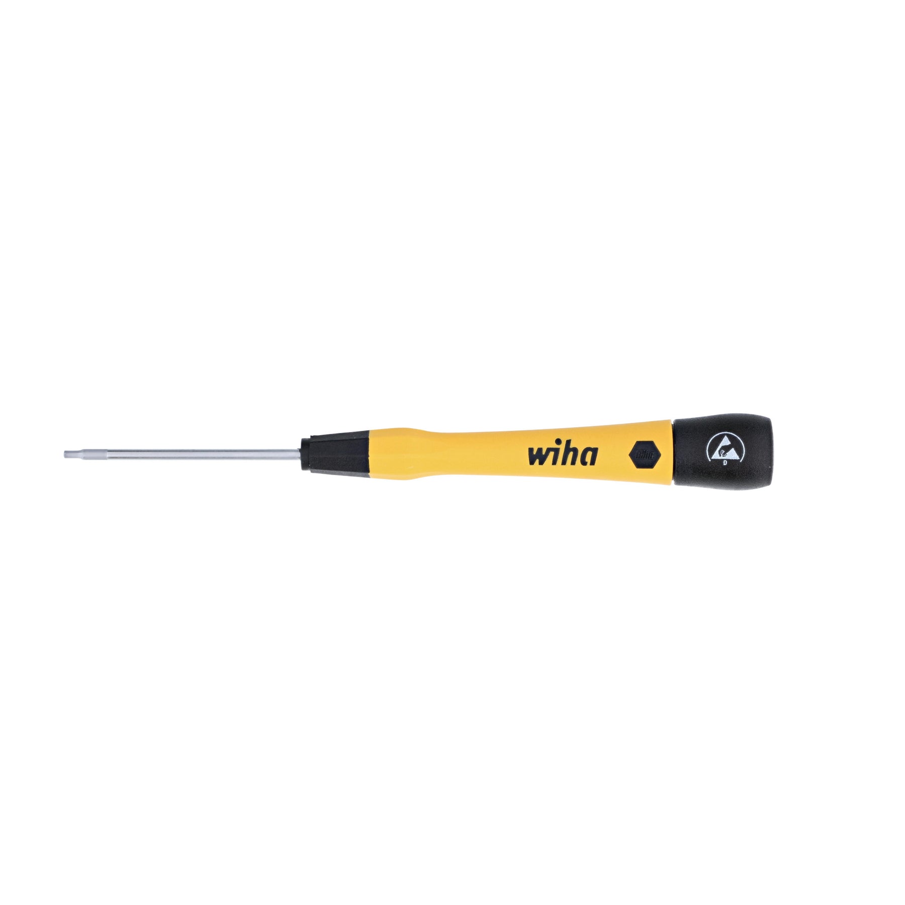Wiha ESD Safe PicoFinish® Precision Drivers are the standard for premium quality featuring ergonomic cushion grip handles for comfort and control, dual durometer construction for long-lasting durability, and handles directly molded to the blade for a permanent bond. The PicoFinish® style includes a hex profile finger grip for precise torque and control, a tapered handle for rapid rotation, and an extra-long cap for optimal hand positions and smooth turning. The handles are sized proportionately to the blade for consistent mechanical advantage and have driver tip profiles labeled on the cap for easy identification. Wiha ESD Safe PicoFinish® Precision Drivers consist of Wiha premium quality tool steel engineered for strength and durability, have a chrome-plated satin finish for corrosion protection, and feature exact fit precision machined tips for reduced cam-out. Wiha ESD safe precision tools meet ESD Standard IEC 61340-5-1 for protecting electronic devices from electrostatic discharge and have a handle surface resistance of 106 - 109 Ohms for balanced electrostatic dissipation. Wiha premium quality ESD Safe PicoFinish® Precision Drivers are designed and engineered by Wiha Germany and manufactured in Germany. You can invest with confidence knowing that this product is backed by the Wiha No Hassle Guarantee.