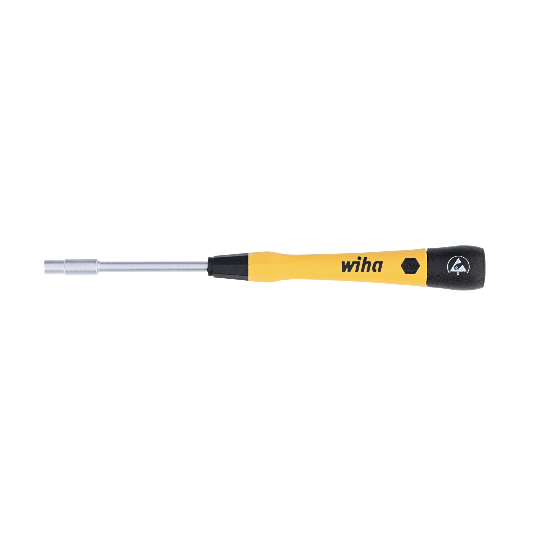 Wiha ESD Safe PicoFinish® Precision Drivers are the standard for premium quality featuring ergonomic cushion grip handles for comfort and control, dual durometer construction for long-lasting durability, and handles directly molded to the blade for a permanent bond. The PicoFinish® style includes a hex profile finger grip for precise torque and control, a tapered handle for rapid rotation, and an extra-long cap for optimal hand positions and smooth turning. The handles are sized proportionately to the blade for consistent mechanical advantage and have driver tip profiles labeled on the cap for easy identification. Wiha ESD Safe PicoFinish® Precision Drivers consist of Wiha premium quality tool steel engineered for strength and durability, have a chrome-plated satin finish for corrosion protection, and feature exact fit precision machined tips for reduced cam-out. Wiha ESD safe precision tools meet ESD Standard IEC 61340-5-1 for protecting electronic devices from electrostatic discharge and have a handle surface resistance of 106 - 109 Ohms for balanced electrostatic dissipation. Wiha premium quality ESD Safe PicoFinish® Precision Drivers are designed and engineered by Wiha Germany and manufactured in Germany. You can invest with confidence knowing that this product is backed by the Wiha No Hassle Guarantee.