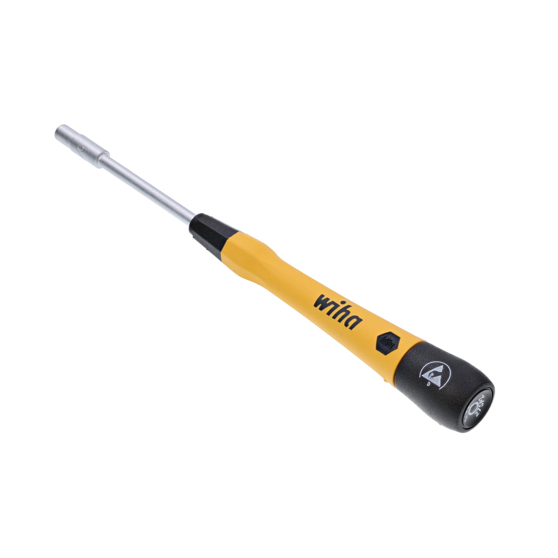 Wiha ESD Safe PicoFinish® Precision Drivers are the standard for premium quality featuring ergonomic cushion grip handles for comfort and control, dual durometer construction for long-lasting durability, and handles directly molded to the blade for a permanent bond. The PicoFinish® style includes a hex profile finger grip for precise torque and control, a tapered handle for rapid rotation, and an extra-long cap for optimal hand positions and smooth turning. The handles are sized proportionately to the blade for consistent mechanical advantage and have driver tip profiles labeled on the cap for easy identification. Wiha ESD Safe PicoFinish® Precision Drivers consist of Wiha premium quality tool steel engineered for strength and durability, have a chrome-plated satin finish for corrosion protection, and feature exact fit precision machined tips for reduced cam-out. Wiha ESD safe precision tools meet ESD Standard IEC 61340-5-1 for protecting electronic devices from electrostatic discharge and have a handle surface resistance of 106 - 109 Ohms for balanced electrostatic dissipation. Wiha premium quality ESD Safe PicoFinish® Precision Drivers are designed and engineered by Wiha Germany and manufactured in Germany. You can invest with confidence knowing that this product is backed by the Wiha No Hassle Guarantee.