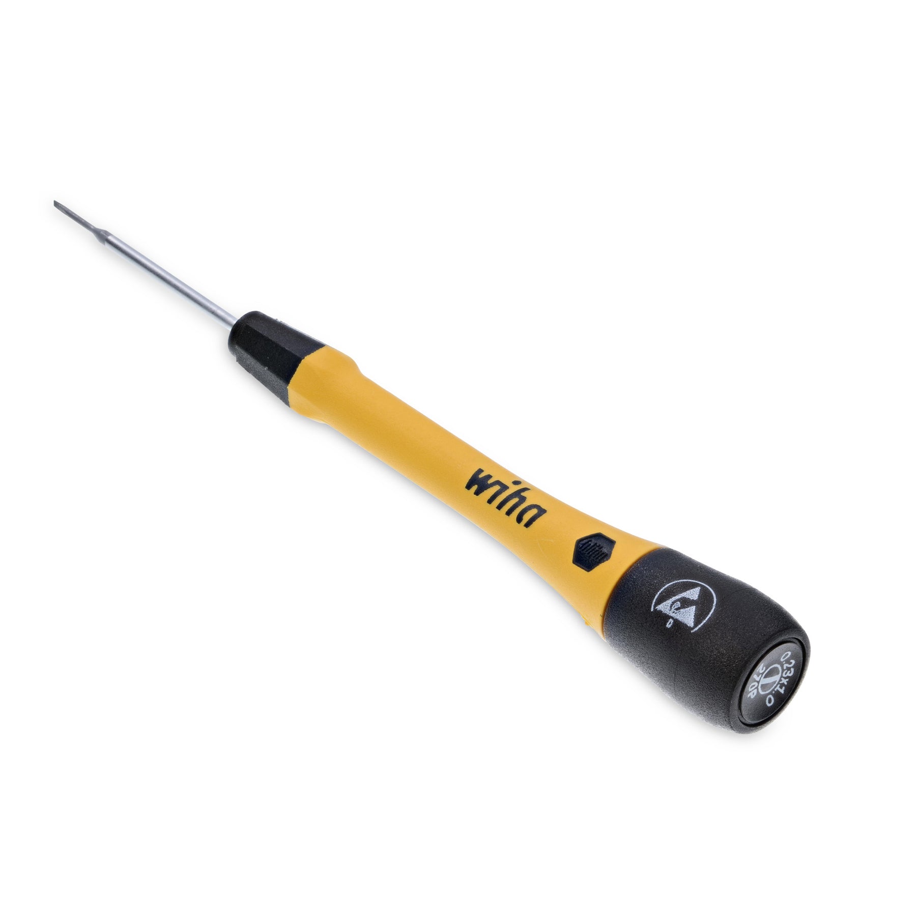 Wiha ESD Safe PicoFinish® Precision Drivers are the standard for premium quality featuring ergonomic cushion grip handles for comfort and control, dual durometer construction for long-lasting durability, and handles directly molded to the blade for a permanent bond. The PicoFinish® style includes a hex profile finger grip for precise torque and control, a tapered handle for rapid rotation, and an extra-long cap for optimal hand positions and smooth turning. The handles are sized proportionately to the blade for consistent mechanical advantage and have driver tip profiles labeled on the cap for easy identification. Wiha ESD Safe PicoFinish® Precision Drivers consist of Wiha premium quality tool steel engineered for strength and durability, have a chrome-plated satin finish for corrosion protection, and feature exact fit precision machined tips for reduced cam-out. Wiha ESD safe precision tools meet ESD Standard IEC 61340-5-1 for protecting electronic devices from electrostatic discharge and have a handle surface resistance of 106 - 109 Ohms for balanced electrostatic dissipation. Wiha premium quality ESD Safe PicoFinish® Precision Drivers are designed and engineered by Wiha Germany and manufactured in Germany. You can invest with confidence knowing that this product is backed by the Wiha No Hassle Guarantee.