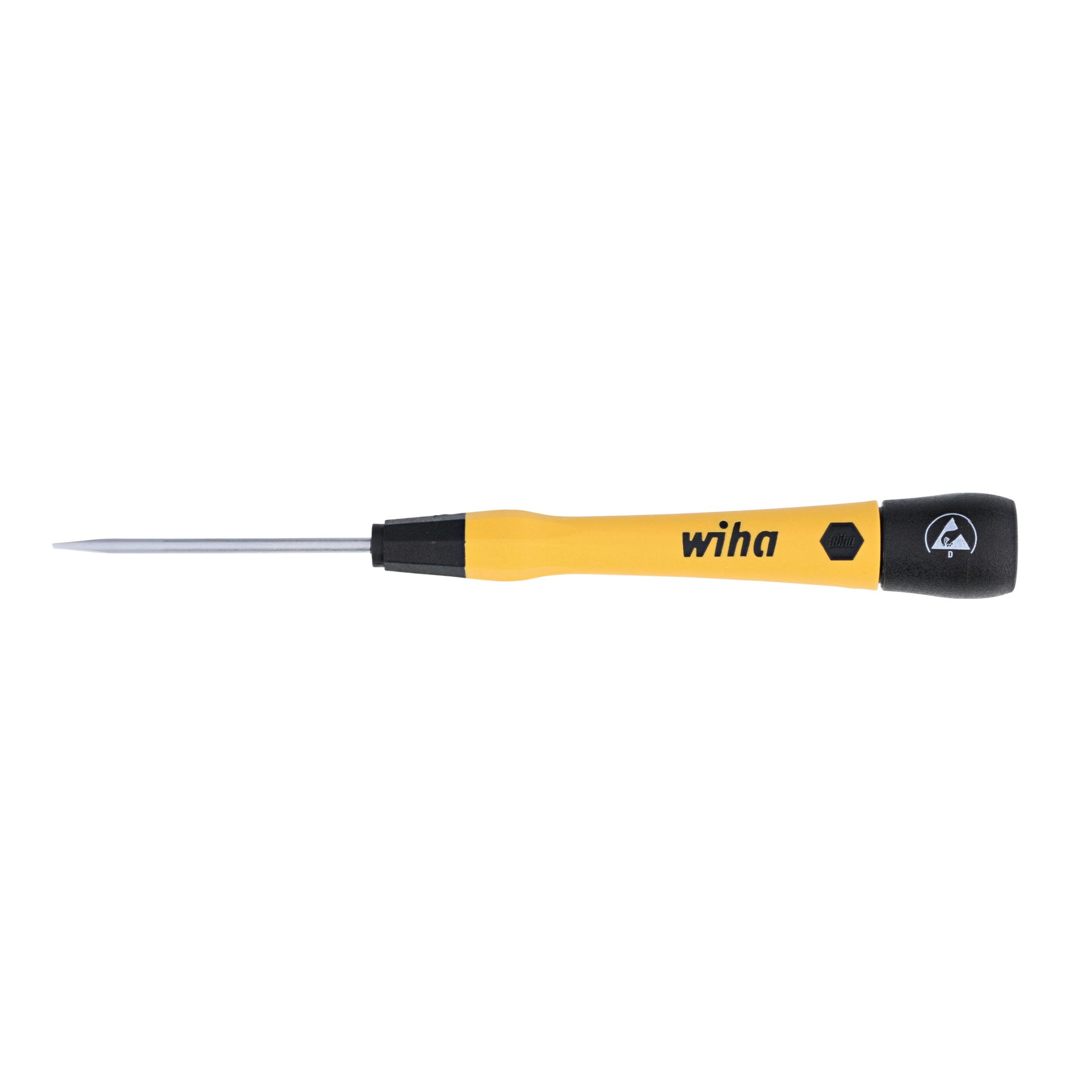 Wiha ESD Safe PicoFinish® Precision Drivers are the standard for premium quality featuring ergonomic cushion grip handles for comfort and control, dual durometer construction for long-lasting durability, and handles directly molded to the blade for a permanent bond. The PicoFinish® style includes a hex profile finger grip for precise torque and control, a tapered handle for rapid rotation, and an extra-long cap for optimal hand positions and smooth turning. The handles are sized proportionately to the blade for consistent mechanical advantage and have driver tip profiles labeled on the cap for easy identification. Wiha ESD Safe PicoFinish® Precision Drivers consist of Wiha premium quality tool steel engineered for strength and durability, have a chrome-plated satin finish for corrosion protection, and feature exact fit precision machined tips for reduced cam-out. Wiha ESD safe precision tools meet ESD Standard IEC 61340-5-1 for protecting electronic devices from electrostatic discharge and have a handle surface resistance of 106 - 109 Ohms for balanced electrostatic dissipation. Wiha premium quality ESD Safe PicoFinish® Precision Drivers are designed and engineered by Wiha Germany and manufactured in Germany. You can invest with confidence knowing that this product is backed by the Wiha No Hassle Guarantee.
