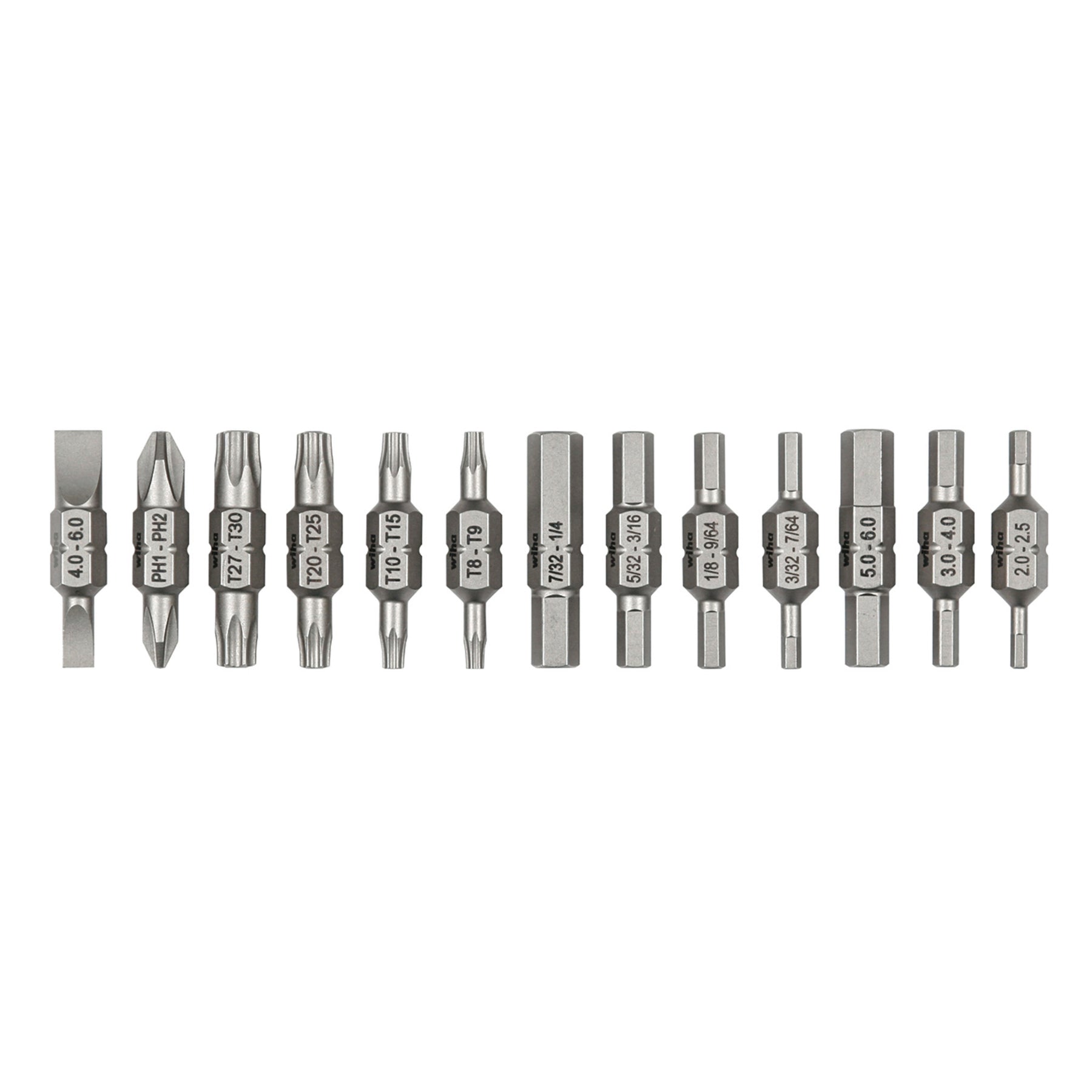 - Set Includes: TORX T8, T9, T10, T15, T20, T25, T27, T30, Phillips #1, #2, Slotted 4.0, 6.0mm, Metric Hex 2.0, 2.5, 3.0, 4.0, 5.0, 6.0mm, Inch Hex 3/32, 7/64, 1/8", 9/64, 5/32, 3/16, 7/32, 1/4"