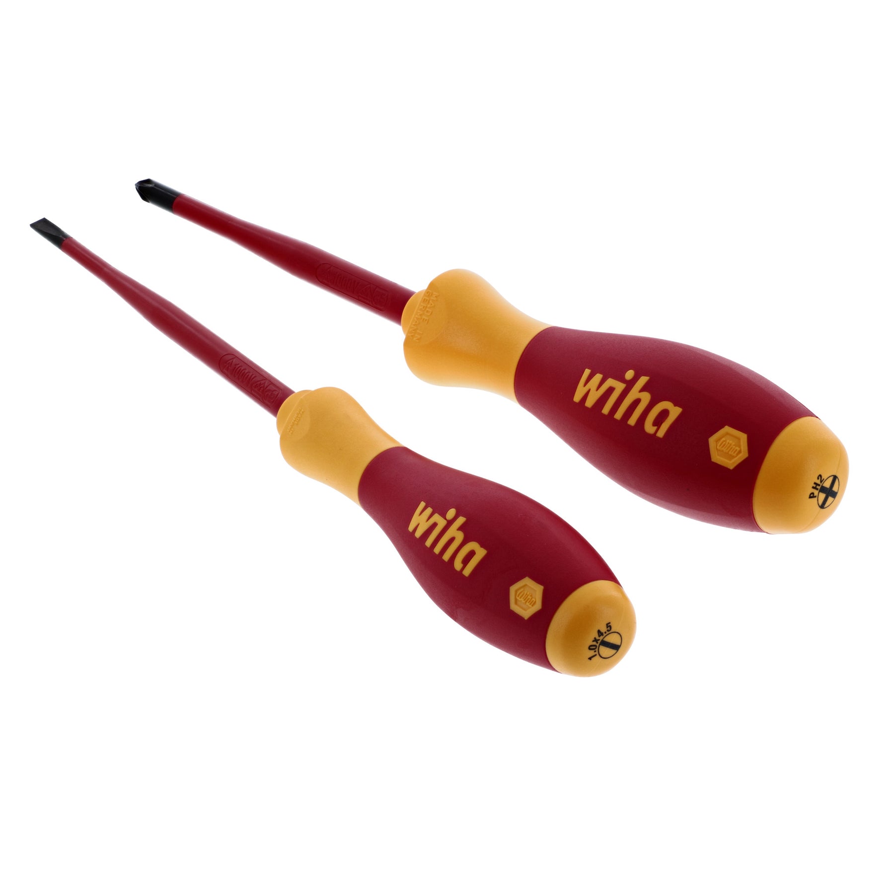 Wiha Insulated SoftFinish® Cushion Grip Drivers are the standard for premium quality featuring ergonomic cushion grip handles for comfort and control, dual durometer construction for long-lasting durability, and handles directly molded to the blade for a permanent bond. The handles are sized proportionate to the blade for consistent mechanical advantage, include parallel flats to prevent table-top roll-off, and have driver tip profiles labeled on the cap for easy identification. Wiha Insulated SoftFinish® Cushion Grip Drivers consist of Wiha engineered premium quality tool steel for strength and durability, have black oxide finish for corrosion protection, and feature exact fit precision machined tips for reduced cam-out. Every single Wiha insulated tool is individually tested to 10,000 volts AC and rated to 1,000 volts AC (1,500 volts DC) for safety and peace of mind in energized applications. This tool is VDE Certified and meets EN/IEC 60900 testing standards for protection against arc flash explosion, ASTM F1505 standard specifications for insulated and insulating hand tools and CSA testing benchmarks for safety and performance. Wiha premium quality Insulated SoftFinish® Cushion Grip Drivers are designed and engineered by Wiha Germany and Manufactured in Germany. You can buy with confidence knowing that this product is Backed by the Wiha No Hassle Guarantee.