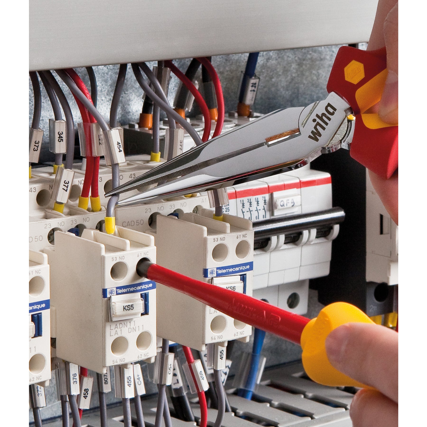 Wiha Insulated SoftFinish® Cushion Grip Drivers are the standard for premium quality featuring ergonomic cushion grip handles for comfort and control, dual durometer construction for long-lasting durability, and handles directly molded to the blade for a permanent bond. The handles are sized proportionate to the blade for consistent mechanical advantage, include parallel flats to prevent table-top roll-off, and have driver tip profiles labeled on the cap for easy identification. Wiha Insulated SoftFinish® Cushion Grip Drivers consist of Wiha engineered premium quality tool steel for strength and durability, have black oxide finish for corrosion protection, and feature exact fit precision machined tips for reduced cam-out. Every single Wiha insulated tool is individually tested to 10,000 volts AC and rated to 1,000 volts AC (1,500 volts DC) for safety and peace of mind in energized applications. This tool is VDE Certified and meets EN/IEC 60900 testing standards for protection against arc flash explosion, ASTM F1505 standard specifications for insulated and insulating hand tools and CSA testing benchmarks for safety and performance. Wiha premium quality Insulated SoftFinish® Cushion Grip Drivers are designed and engineered by Wiha Germany and Manufactured in Germany. You can buy with confidence knowing that this product is Backed by the Wiha No Hassle Guarantee.