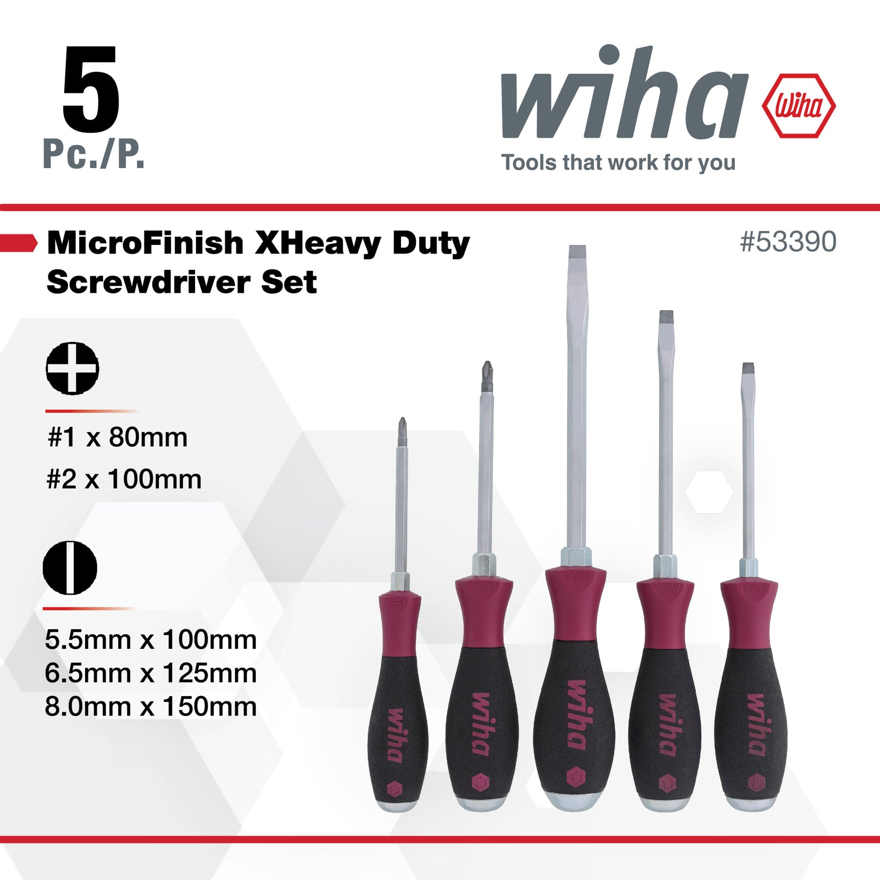 5 Piece MicroFinish XHeavy Duty Slotted and Phillips Screwdriver Set