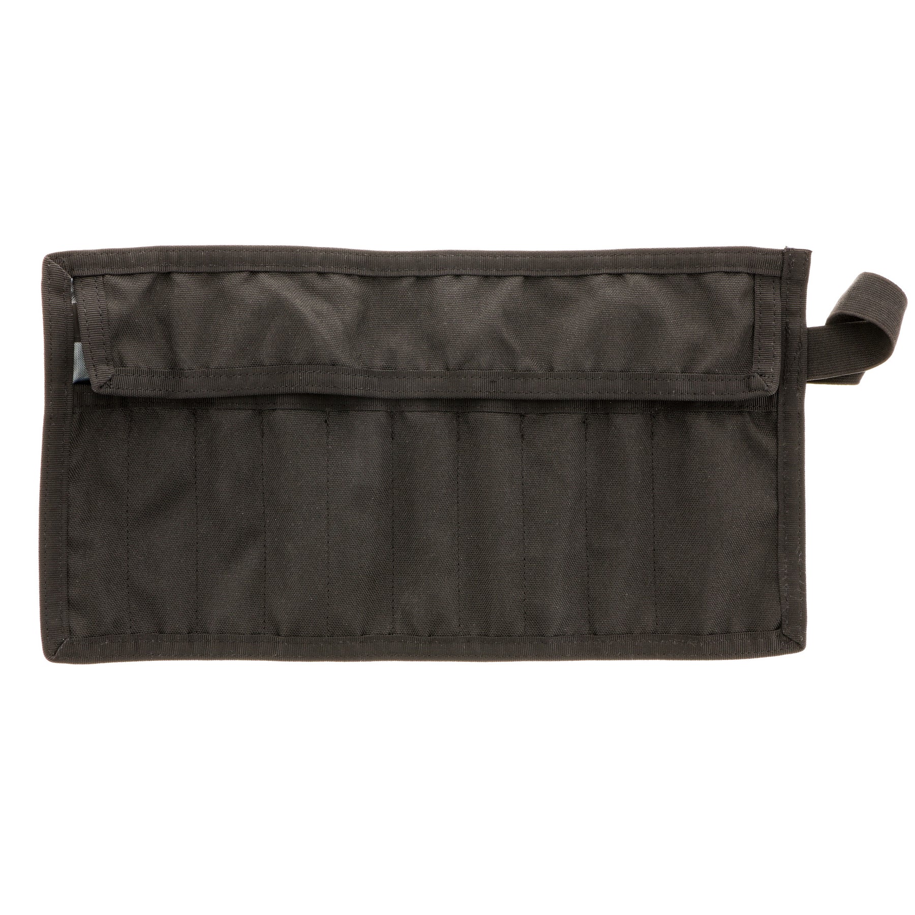 Designed to work for you the Wiha Roll-up Tool Pouch provides a convenient and secure solution for the organization of your Wiha Precision Tools. Crafted of rugged polyester canvas, the storage pouch features 10 compartments to secure Wiha Precision Screwdrivers, Pliers, and Cutters up to 170mm in length. Open the 14” x 7.5” pouch to find a layover flap protects your tool handles from excess handle to handle abrasion and prevents tools from falling out while in storage. The pouch rolls closed easily and the sturdy elastic closure keeps your precision tools securely locked inside.