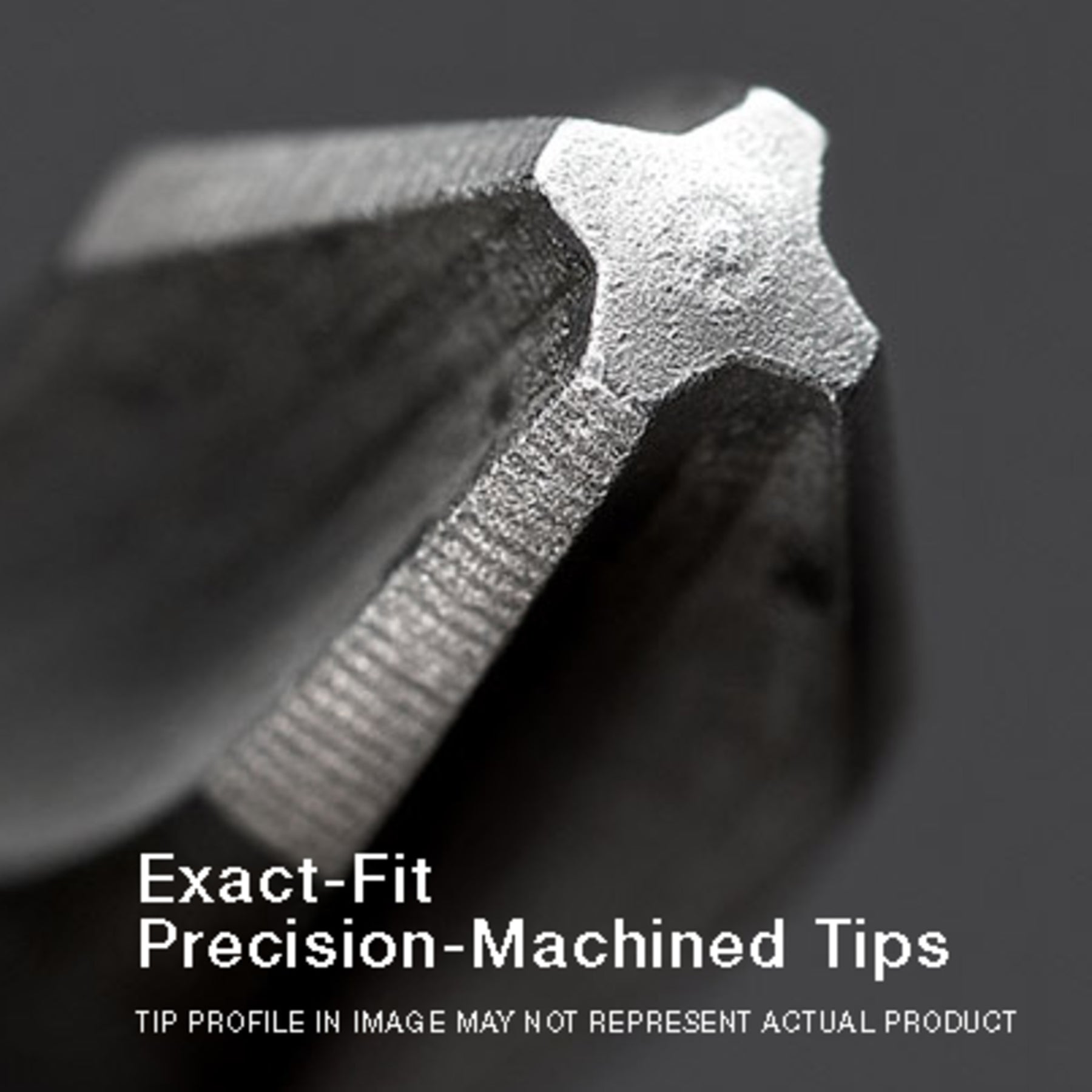 - Exact fit precision machined Square tips for reduced cam-out
