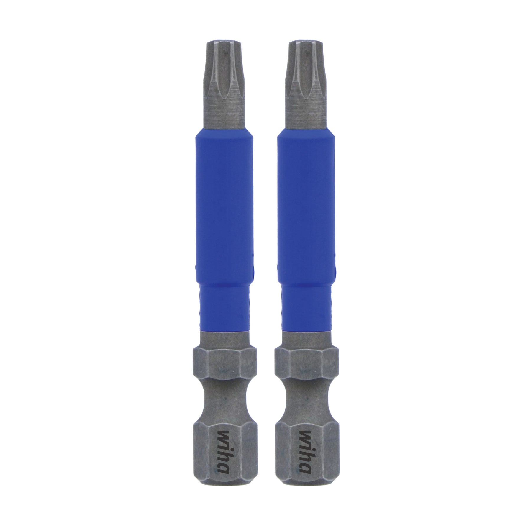 Terminate screws faster—and with fewer broken bits. Wiha's TerminatorBlue Torx Impact Bits—proven toughest. TerminatorBlue Torx Bits are impact rated for power tools and rigorously heat-treated to produce a bit lasting 120 times the service life compared to standard bits. With TerminatorBlue Torx Impact Bits you get the tightest-fit precision-machined driver tips from the company that sets the standard for precision. Wiha's exact-fit Torx tips eliminate excessive bit-wobble for increased driver accuracy. The result is a highly stable engagement with the screw head and a reduction in fastener cam-out that can lead to injury or damage to finished materials.